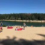 The 1-room Ferienwohnung 'Gmunder Hof' Gmund provides swift access to various city landmarks, such as Glas und Stein Museum, located 400 metres away. Staying in this spacious apartment, nestled a mere 5 minutes on foot from Naturpark Blockheide, guests can relax on a terrace.